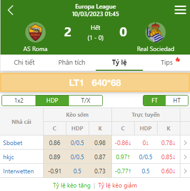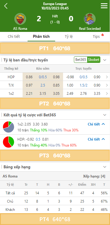 Các vị trí trên trang Tỷ lệ bóng đá